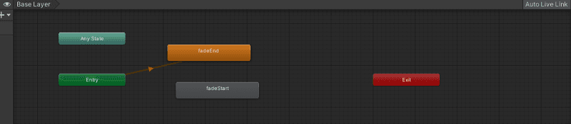 Zodat de overgang van gewone scene naar zwarte scene niet hard is, zullen via een animator een vloeiende overgang zetten op onze Image.