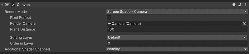 Binnen het Canvas-element van je zwart scherm heb je nog een optie op deze overlay van camera standpunt aan te passen. Zet je Render Mode op Screen Space - Overlay.