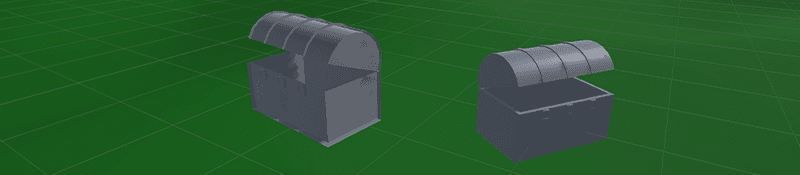Het is misschien niet heel erg duidelijk op deze afbeelding, maar je ziet dat de linker schatkist anders wordt gerenderd dan de rechter.