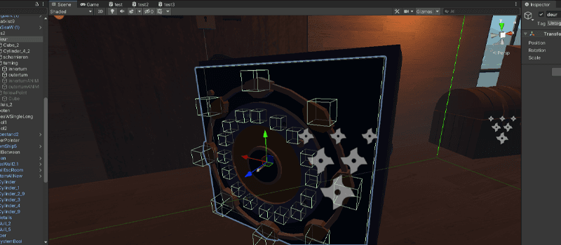 Verder zette ik alle Box Colliders van de kluis op een ChildElement binnen de kluis.