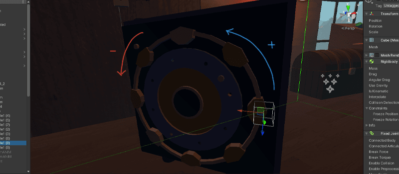 Na het exporteren in Unity gaf ik de kluis uiteraard weer wat kleur, en kon ik beginnen met de physics van deze kluis een keer te doorgronder.