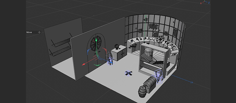 In de controlekamer zal mijn game plaatvinden. Hier bracht ik al even alle models (buiten de oceaan) bij elkaar om het geheel te bekijken.